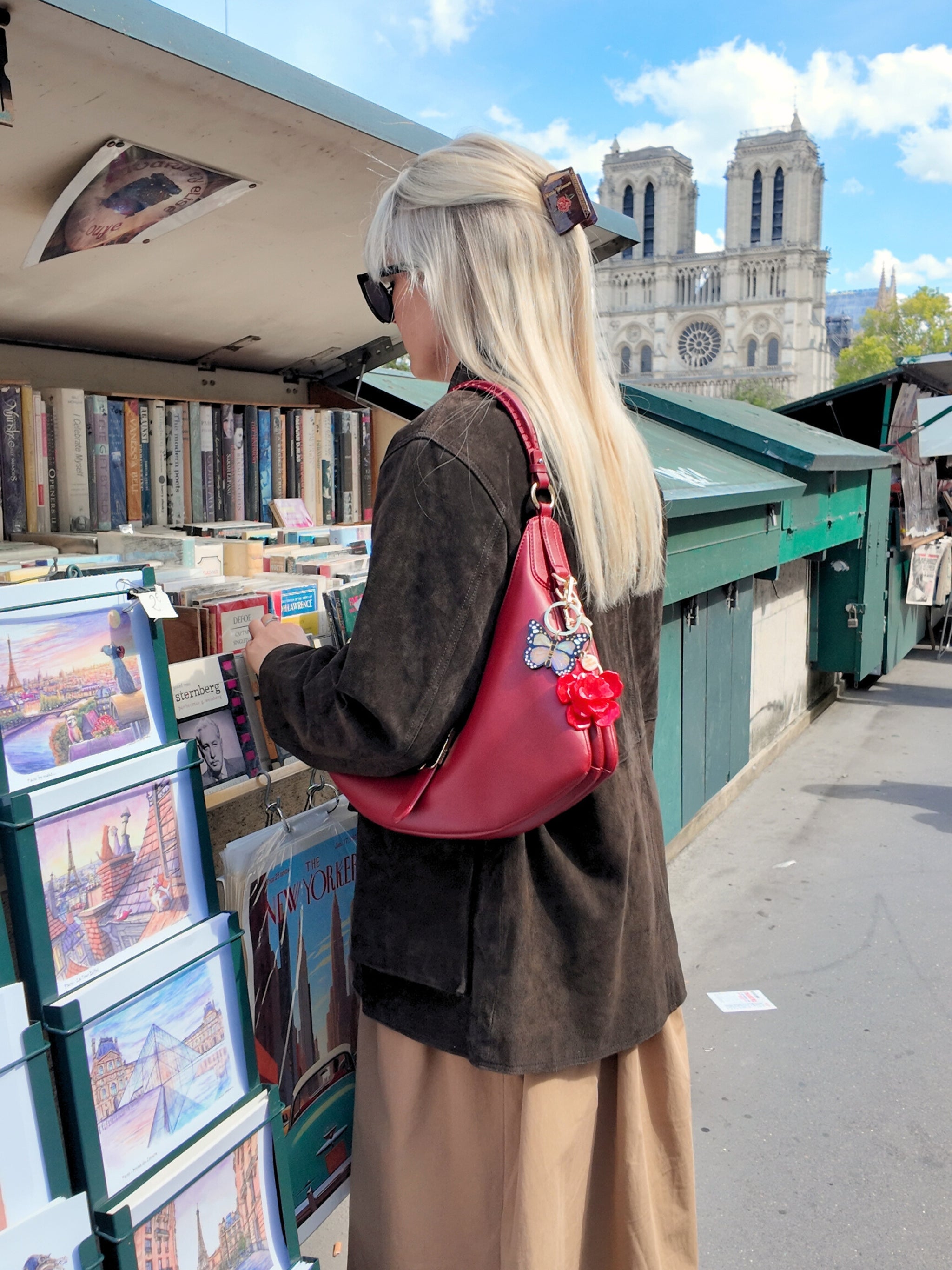 This unique, stylish bag charm is designed to upgrade and personalise your favourite bag or keychain. Designed in New York City by an all-female team, the double-sided charm is hand-painted on both sides for an iconic look from all angles. Crafted in small batches with super-strong biodegradable acetate, these versatile pieces are statements of self-expression.