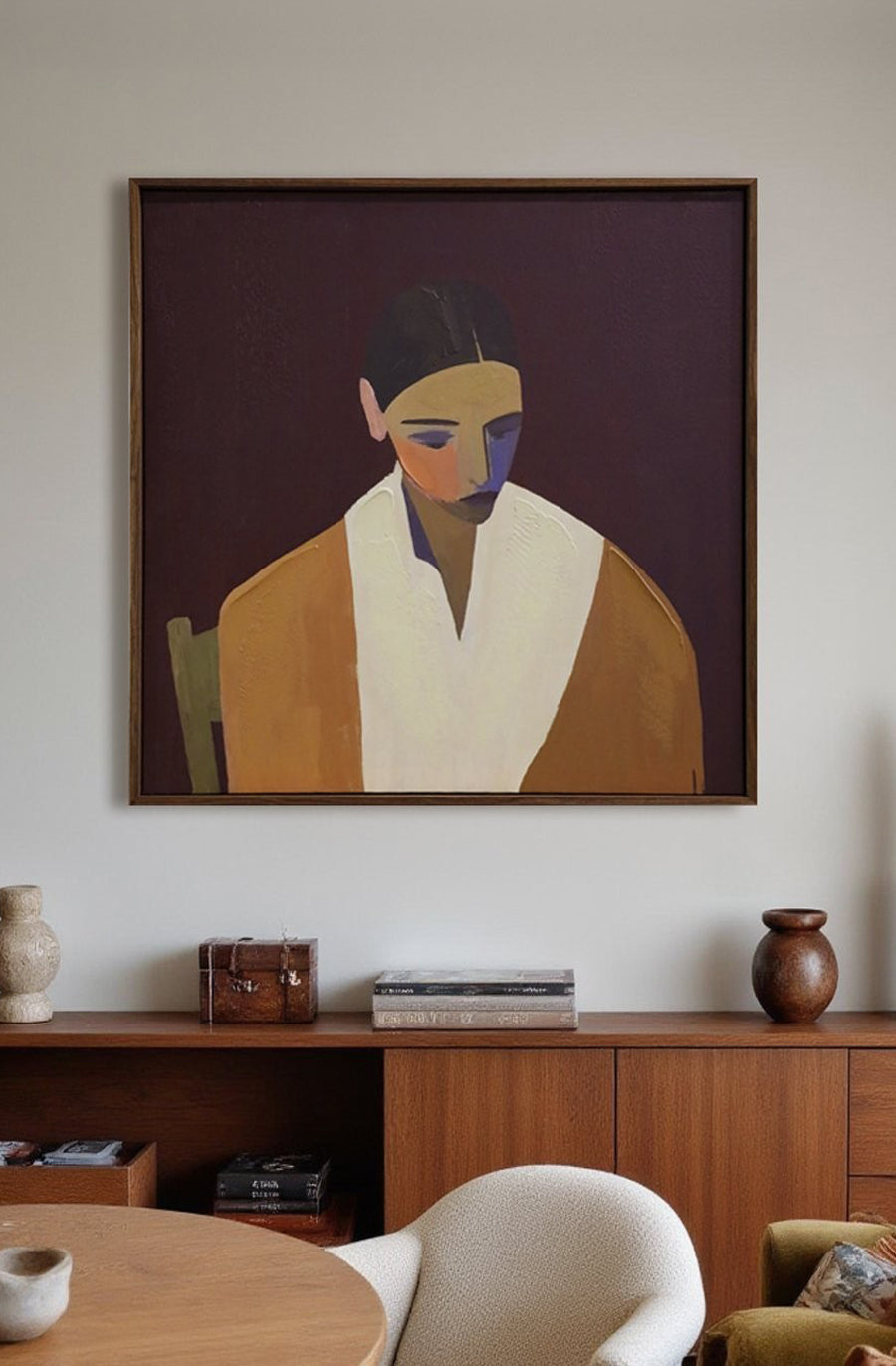 Rory is an on-trend portrait artwork defined by soft, hand-embellished texture and modern colour blocking. Warm neutral tones are balanced with deeper accents, creating a contemporary, pared-back composition that feels considered and refined. Finished in a walnut-coloured veneer frame, Rory adds subtle character and warmth to modern interiors, working well as a standalone piece or within a curated gallery wall.