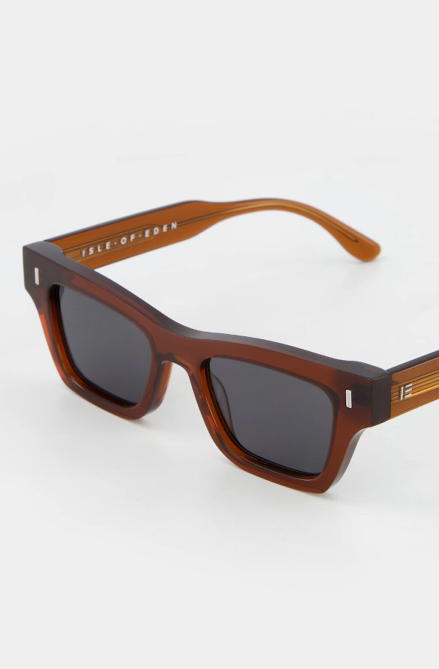 Taking cues from 50's and 60's silhouettes, the Olli is a sleek and refined design with a lower profile frame, and metallic art-deco inspired detailing to bring it into the present. The frame is adorned with 'double I' hinge pins, filigree wire temple cores, IE monograms, flattened bridge, low base lenses, and super-sharp acetate edging.